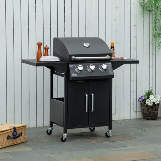 3 Burner Gas BBQ Grill Portable Barbecue Trolley Warming Rack Storage Cabinet