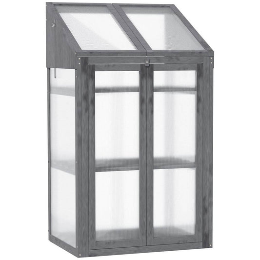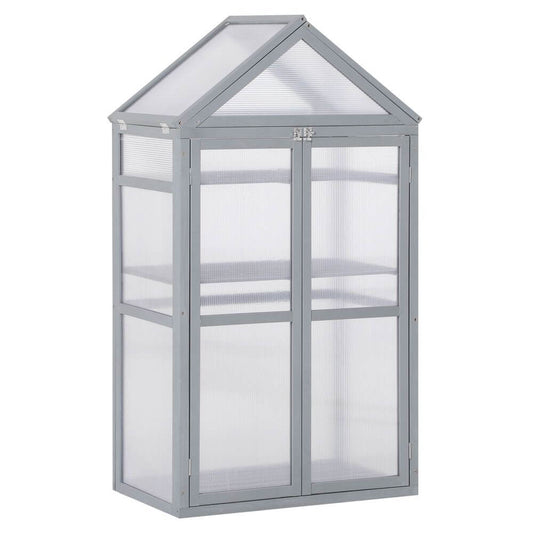 Wooden Greenhouse Cold Frame Grow House w/ Double Door Grey