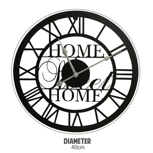 Home Sweet Home Black Metal Clock - 40Cm