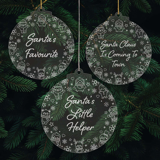 Santa's Favourite Christmas Cuties Tree Baubles - Set of 3 Engraved Clear Acrylic Festive Decorations - 8.8 cm