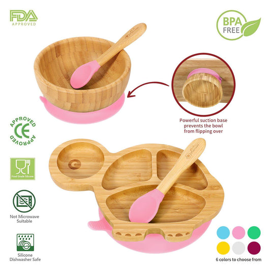 Vinsani Bamboo Turtle Plate, Bowl & 2 Spoon Set