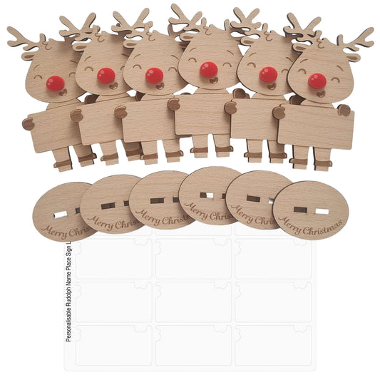 Rudolph Wooden Name Place – 6 Pack – Personalised Christmas Table Decorations & Festive Keepsake Figures