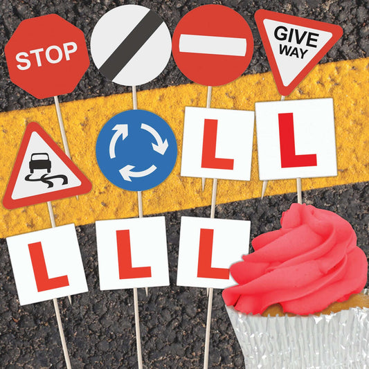 Learner Driver Cupcake Toppers Set - 24pc - L Plates & Road Signs | Celebrate 17th Birthday, Learning To Drive or A New Driver | Cupcake & Cake Decorations