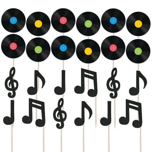 Vinyl Record & Glitter Music Notes Cupcake Toppers Set - 24pc