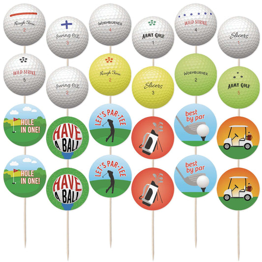 Golf Cupcake Toppers Set - 24pc - Golf Messages & Golf Balls | Perfect for Golfers, Young, Old, Good or Bad! | Birthday Celebration Cupcake & Cake Decorations