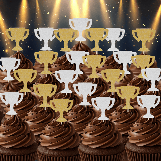 Trophy Cupcake Toppers Set - 24pc - Gold & Silver Glitter Trophies