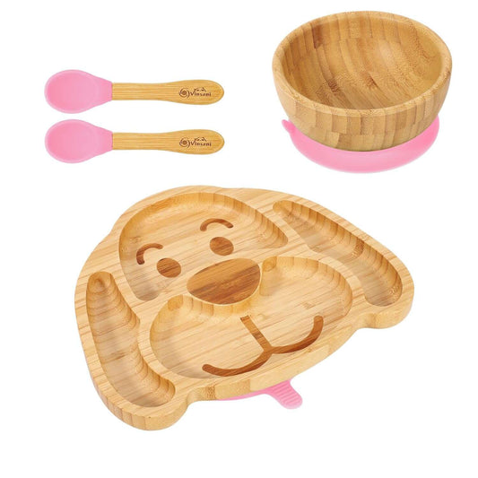 Vinsani Bamboo Dog Plate, Bowl & Spoon Set