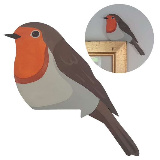 Robin Hand Painted Wooden Bird Corner Decoration - Left or Right Facing - Perfect For Door Frames, Cupboards, Light Switches, Pictures & More