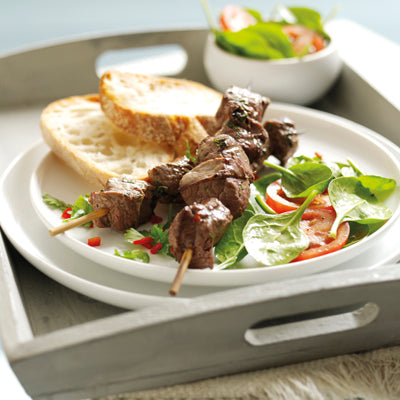 - Serve the satays with crusty bread and a spinach and tomato salad with elderflower dressing.