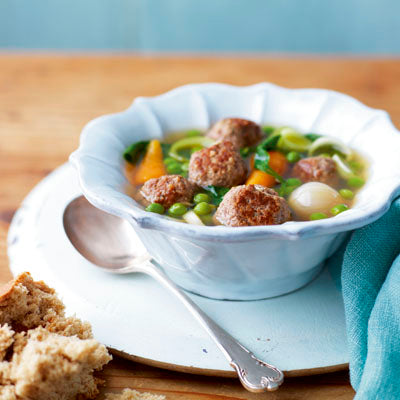 - Place the mince into a large bowl with the herbs and garlic. Season, mix well and shape into 20-24 small meatballs.
