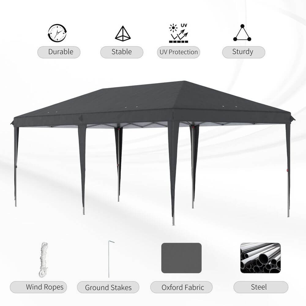 This 3m x 6m pop-up gazebo is easy to set up whenever you need shelter - whether for garage sales, garden parties, BBQs, outdoor events, receptions, fayres - the list goes on.