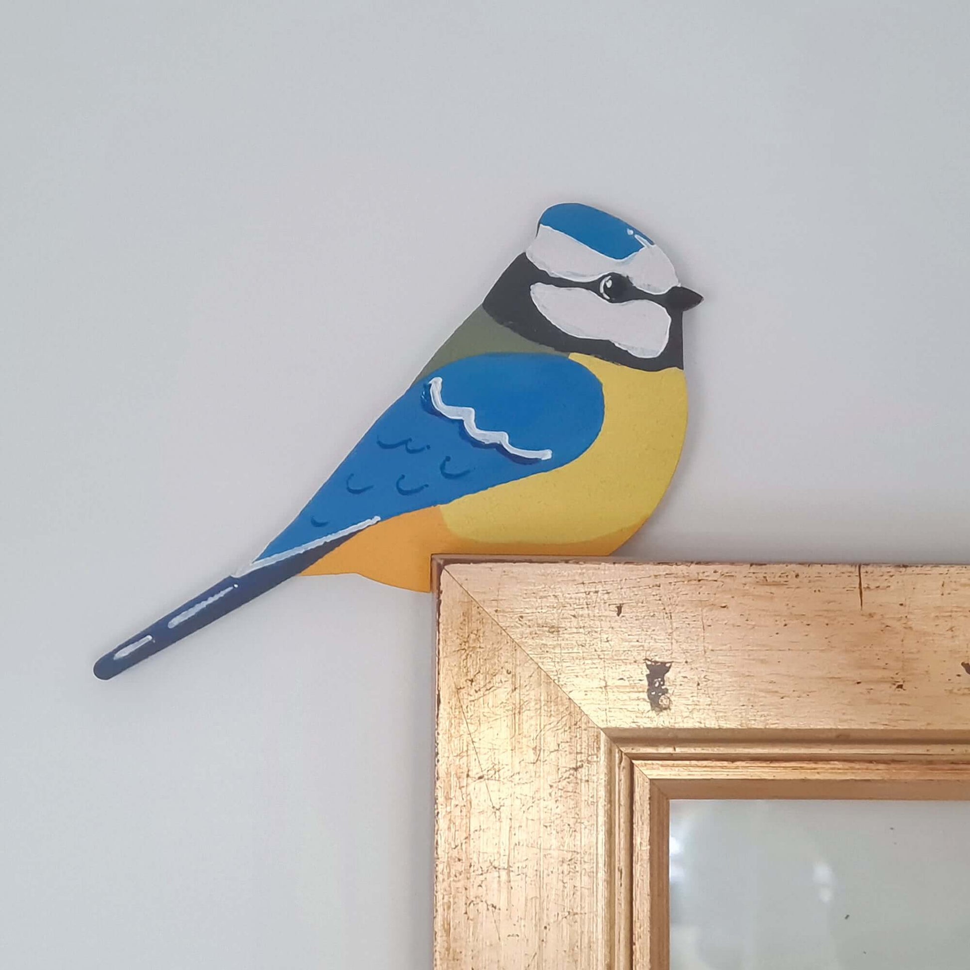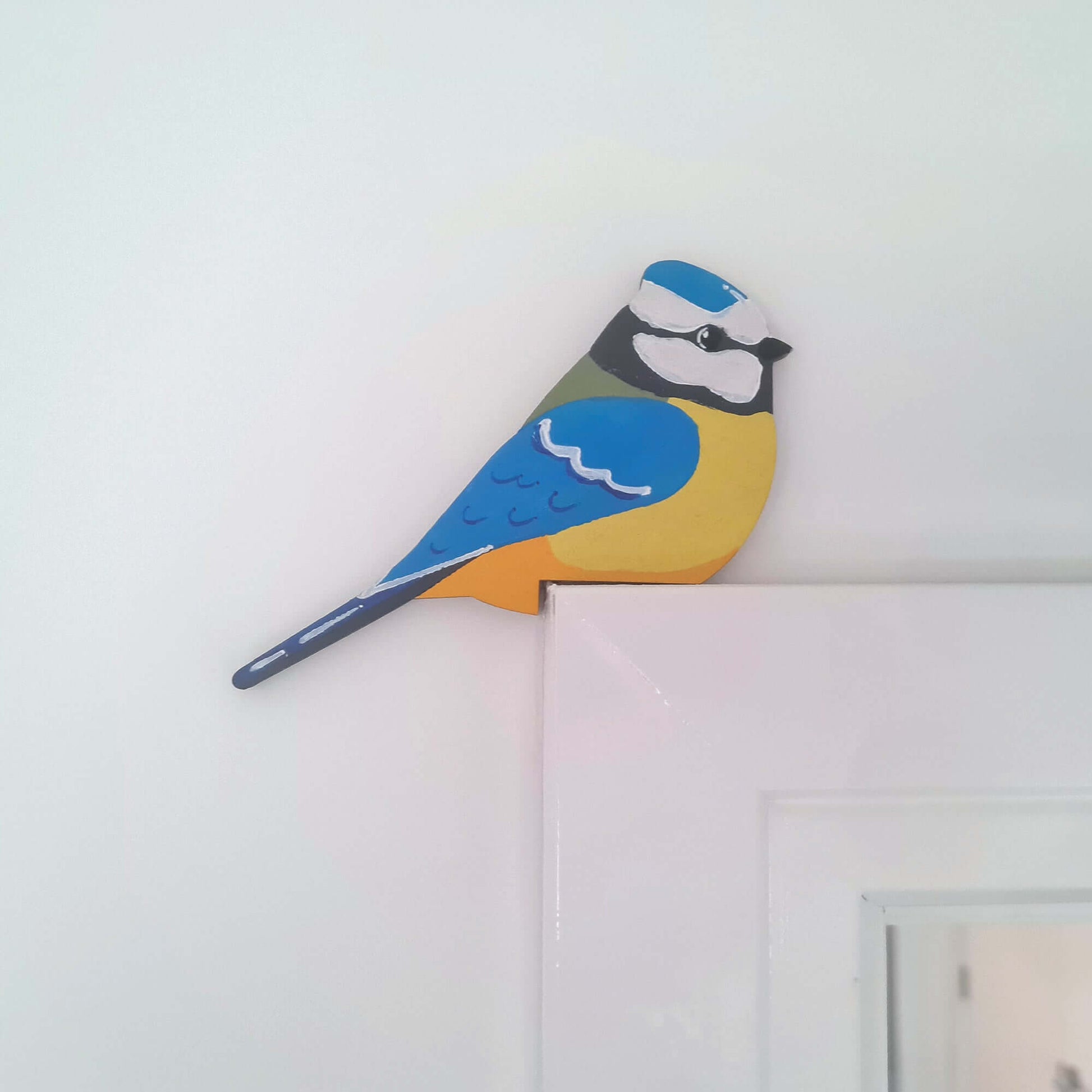 Blue Tit Hand Painted Wooden Bird Corner Decoration - Left or Right Facing - Perfect For Door Frames, Cupboards, Light Switches, Pictures & More