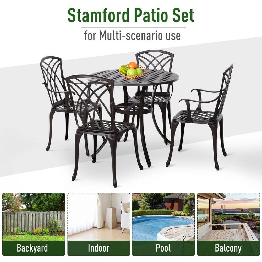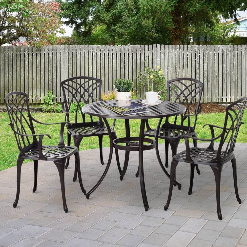 Cast Aluminium 4-Seater Outdoor Garden Table & Chair Set Brown
