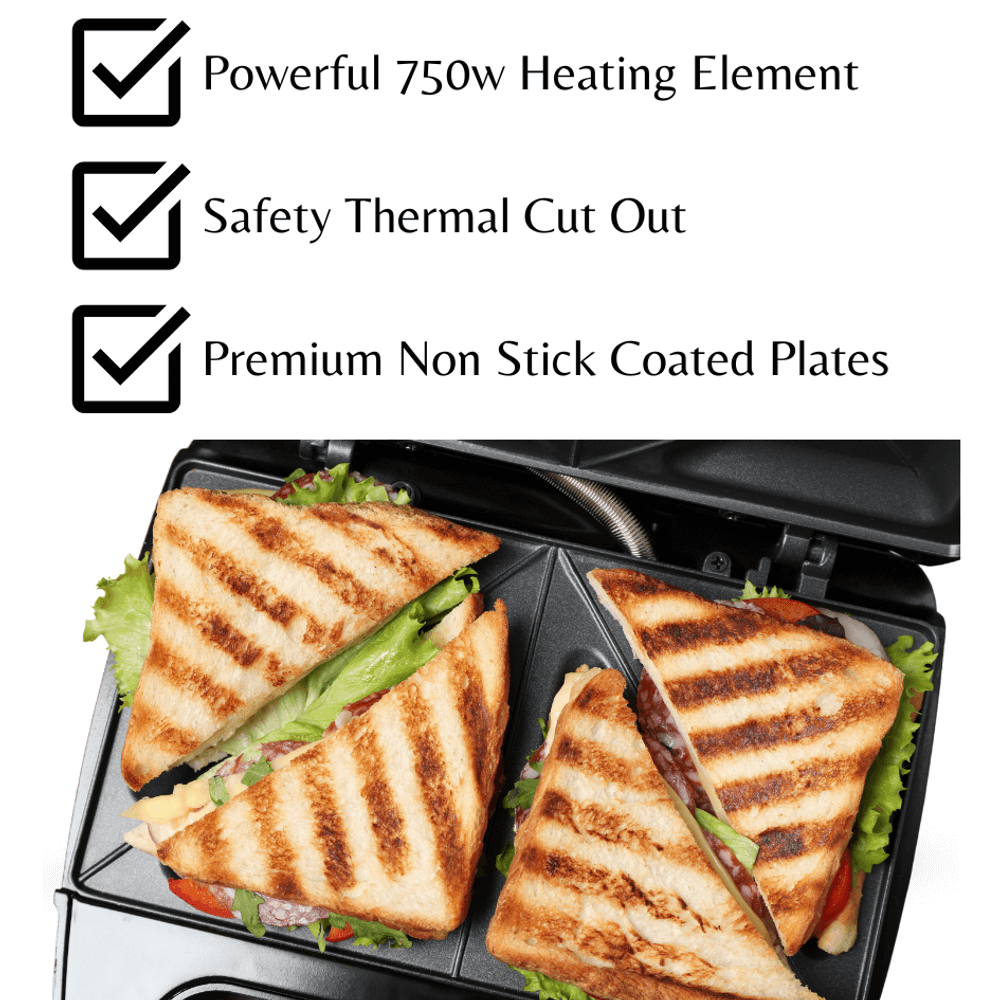 - Versatile Grill Press: It's not just a sandwich maker; it's your versatile grill press. Craft the crispiest toasties, elevate your cheese-melting game, or warm up your favourite wraps with precision and ease.