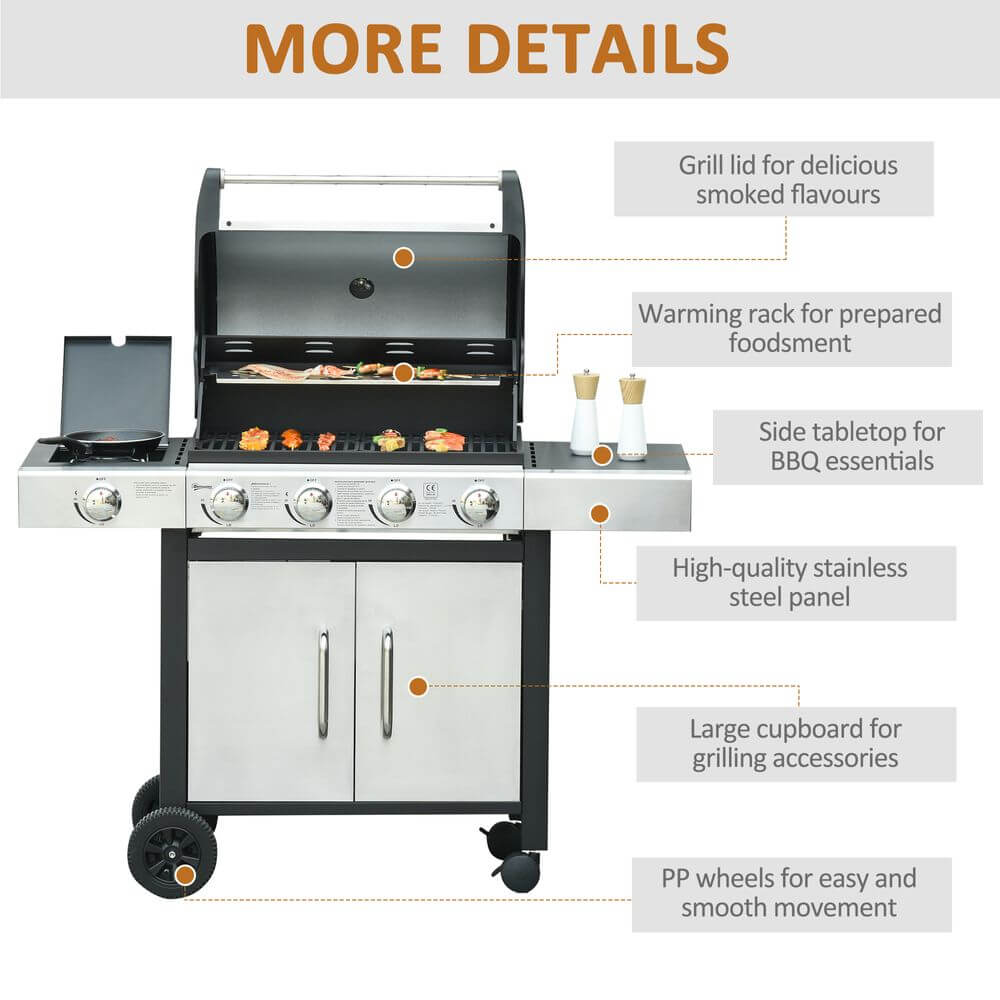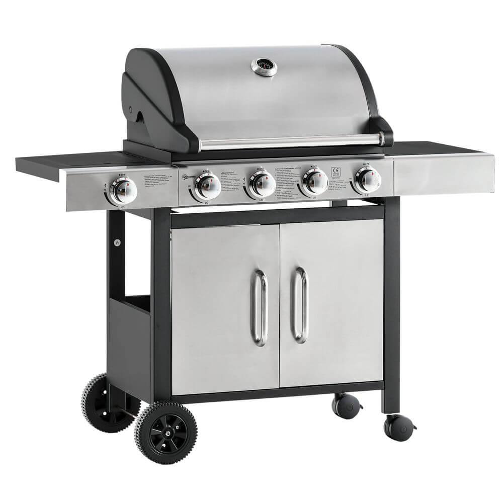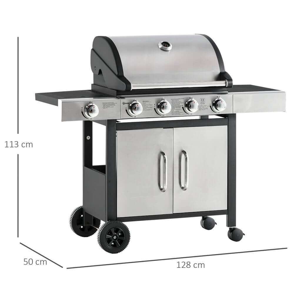 Gas Barbecue Grill 4+1 Burner BBQ Trolley Rack 128x50x113cm Stainless Steel
