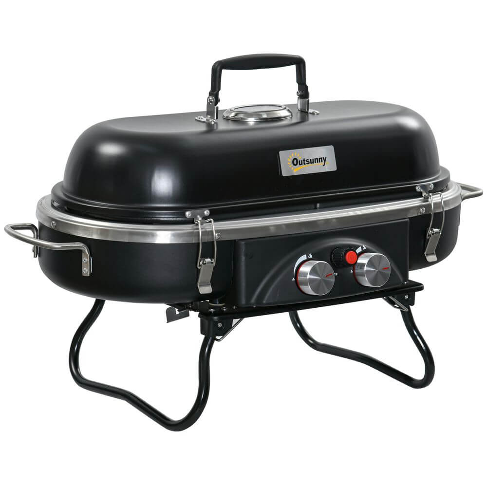 Gas BBQ Grill 2 Burner TableTop With Piezo Ignition & Thermometer