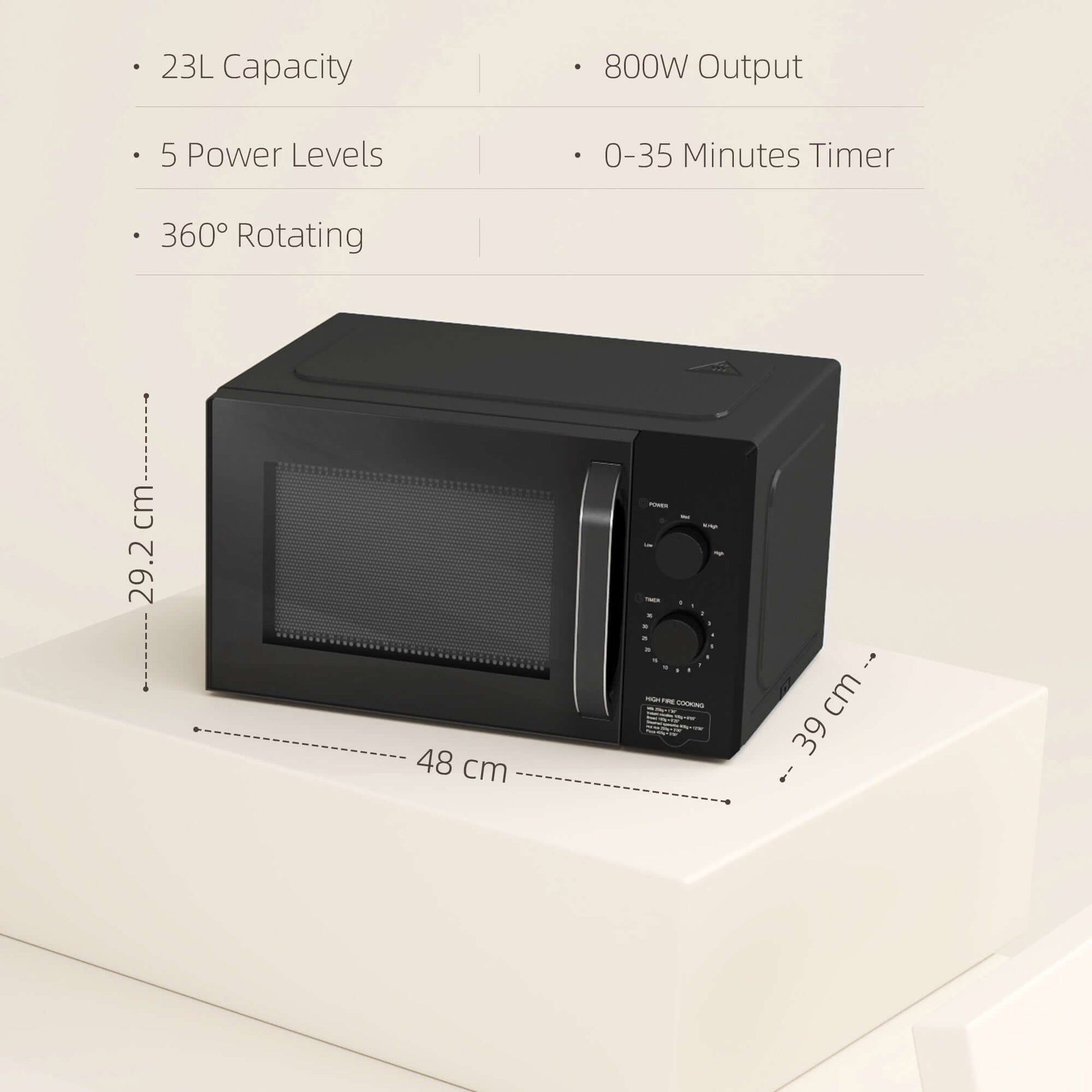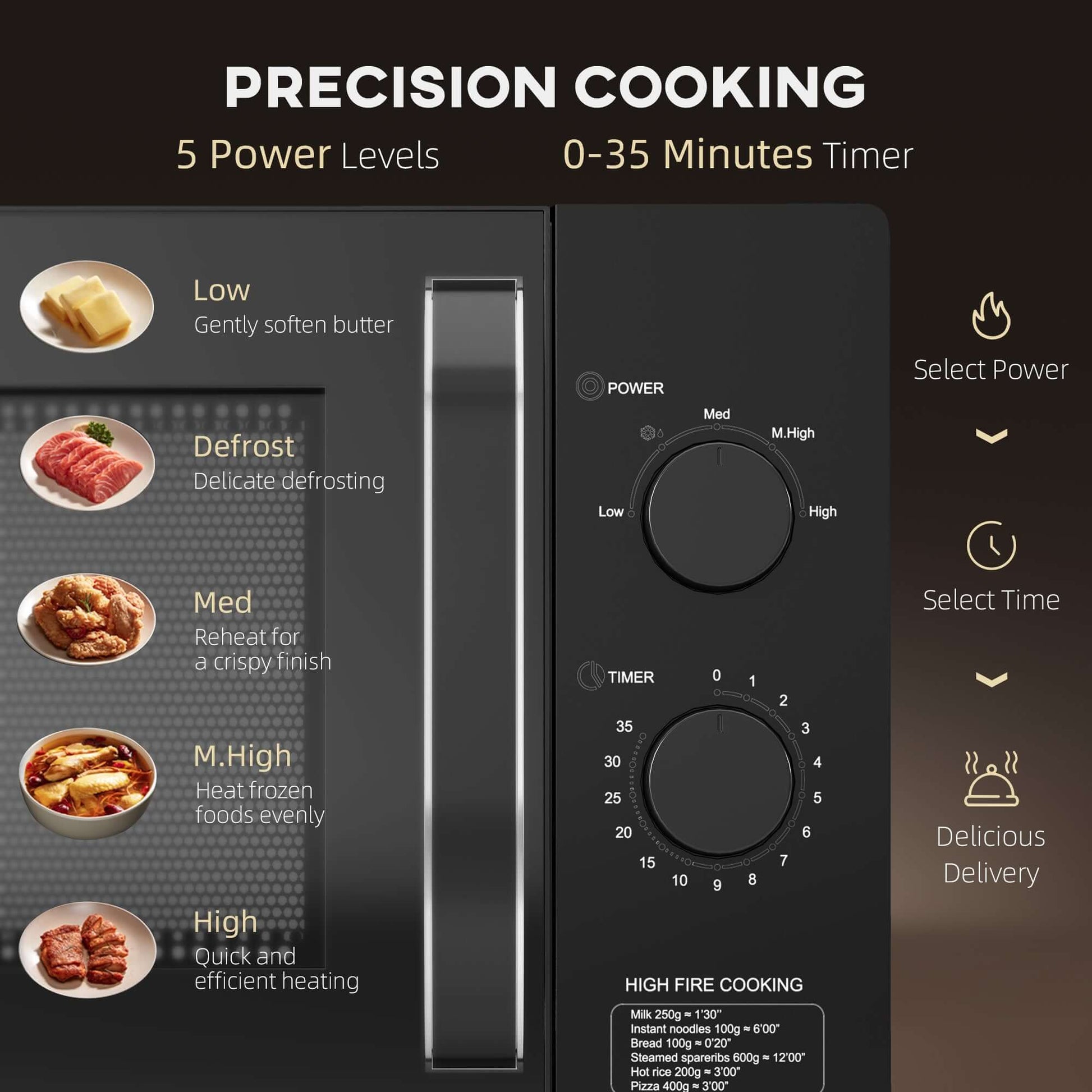 HOMCOM 23L Solo Manual Microwave Oven with 5 Levels, Timer, Black