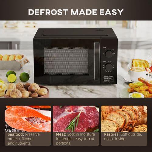 ● 800W power and 360° rotating turntable enable quick and even cooking results
