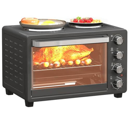 HOMCOM 28LWorktop Toaster Oven with 2 Hot Plates, Grill, Roast, Bake