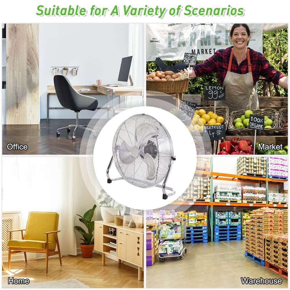 - DURABLE METAL CONSTRUCTION: Made with a strong and reliable metal body, this fan is built to last. It features a large head and 18-inch fan blades, ensuring robust performance and effective cooling.