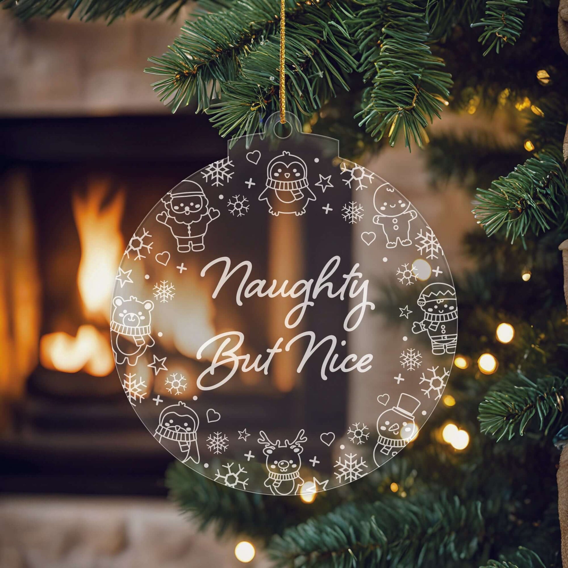 Naughty List Christmas Cuties Tree Baubles - Set of 3 Engraved Clear Acrylic Festive Decorations - 8.8 cm