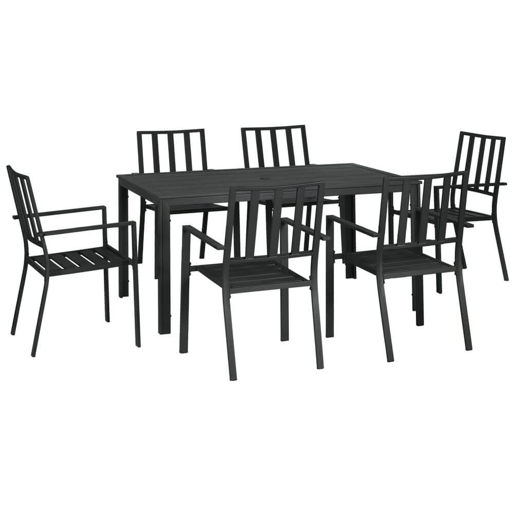 Outsunny 7 PCs Garden Dining Set w/ Stackable Chairs and Metal Top Table, Black