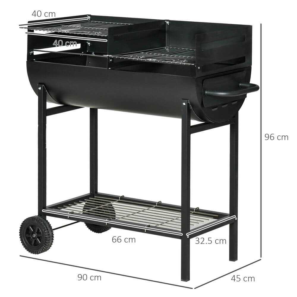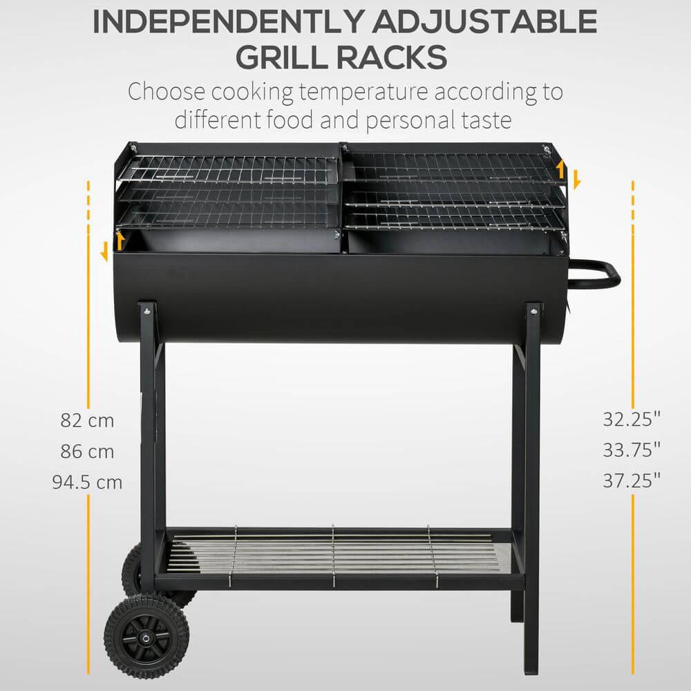 Outsunny Steel 2-Grill Charcoal BBQ w/ Wheels Black