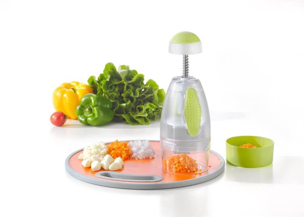 NO MORE MESS: Chopping on boards can be messy sometimes. Vinsani Chopper’s enclosed plastic cup under the blade captures chopped food. So you can chop without spreading the shreds around in the kitchen.