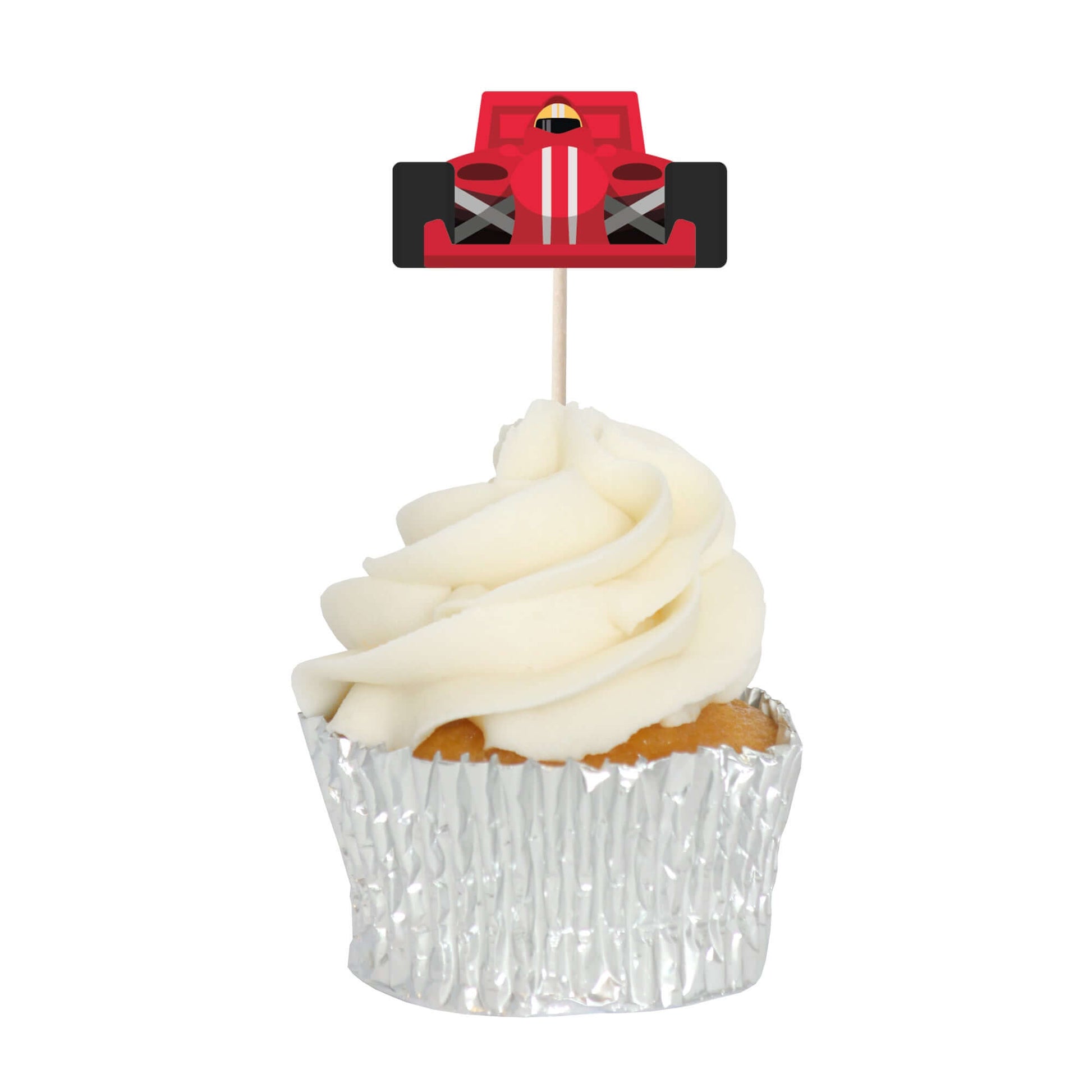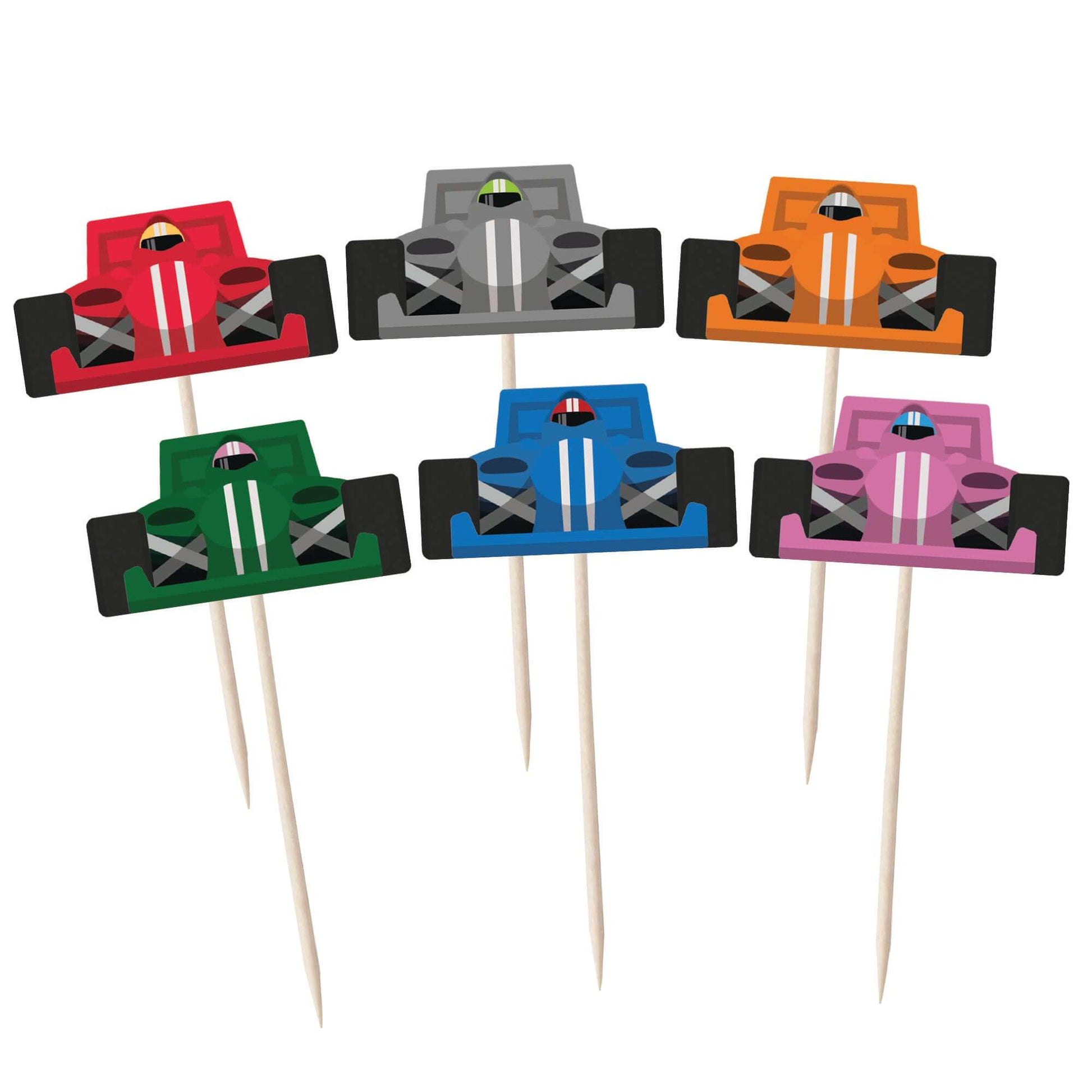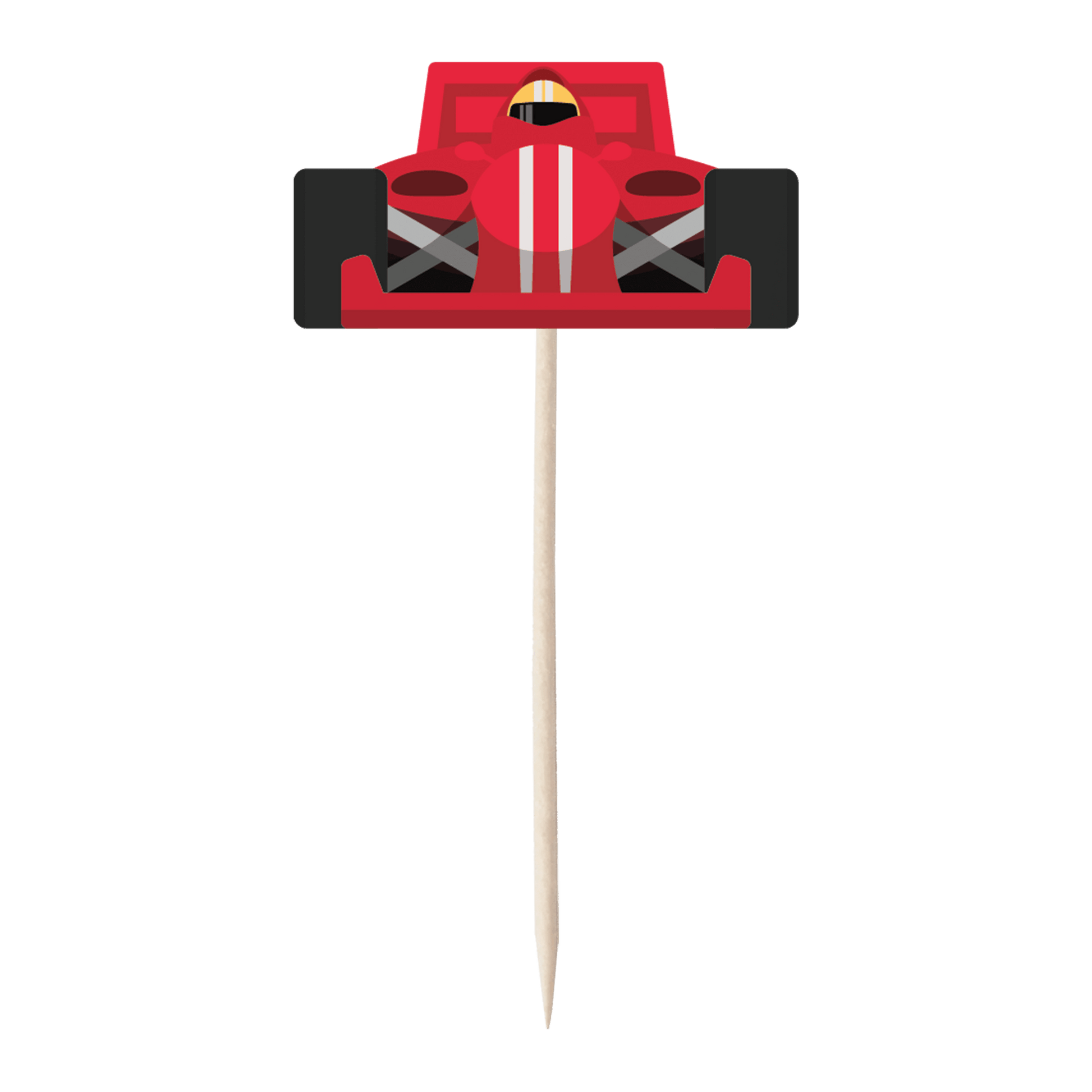 Perfect for cupcakes, these toppers can also be used on other party foods, such as sandwiches, puddings, desserts, cakes, and bakes. Ideal for birthdays or other racing car celebrations.