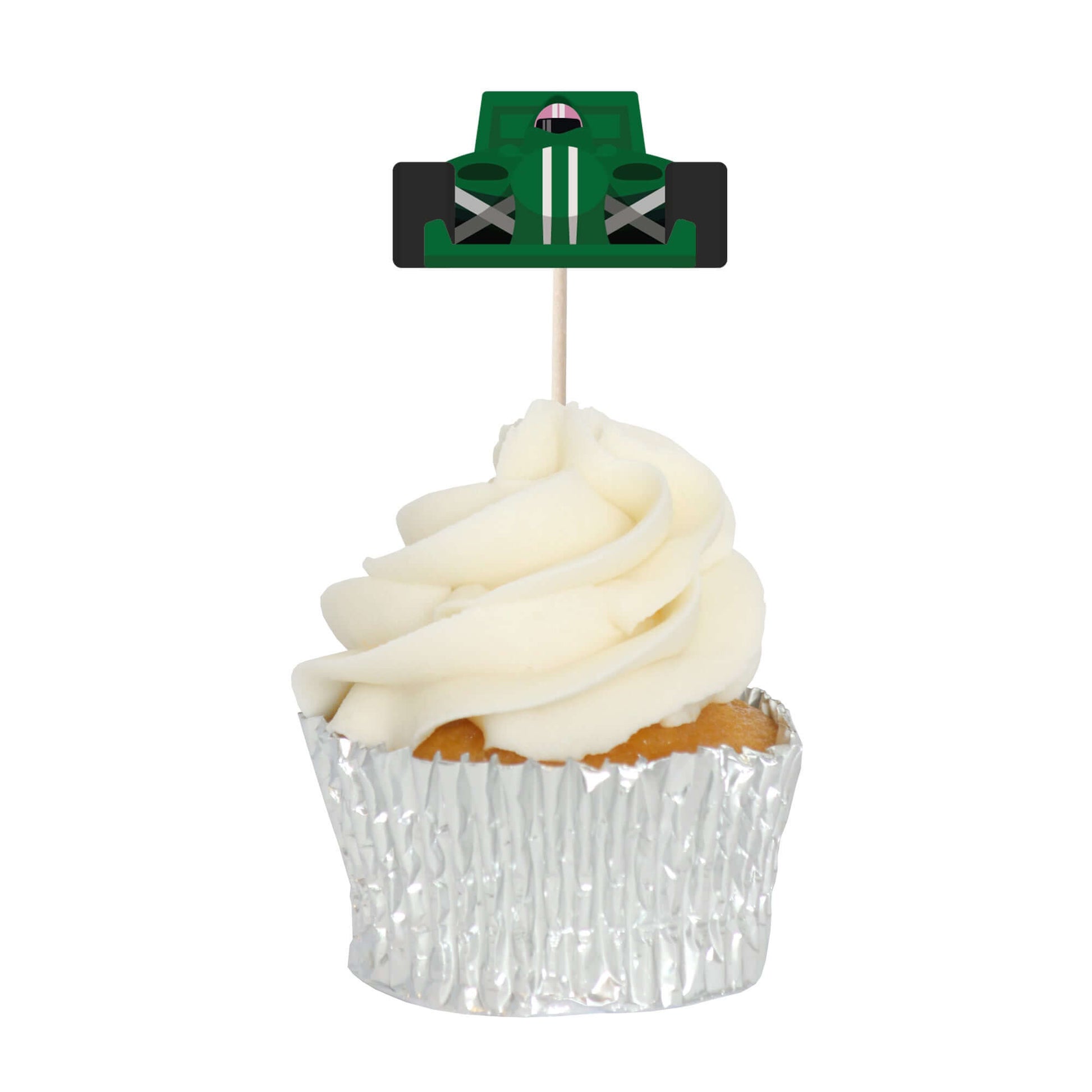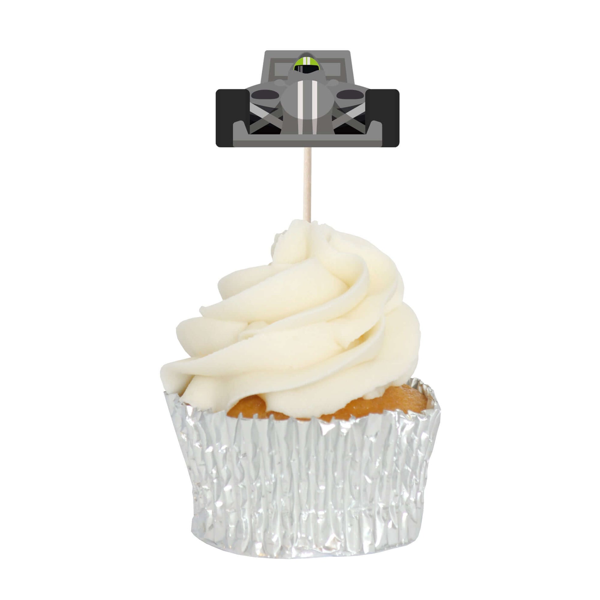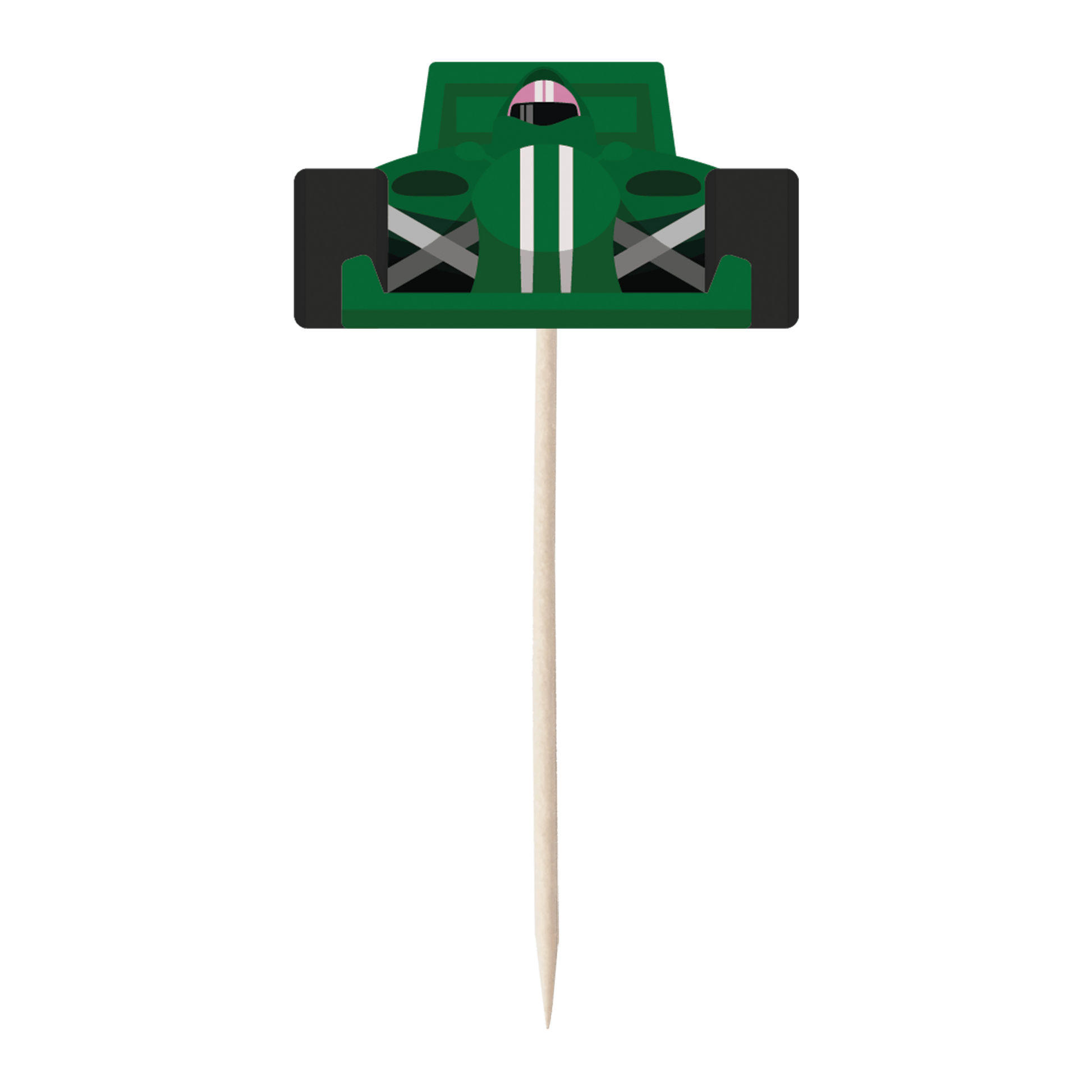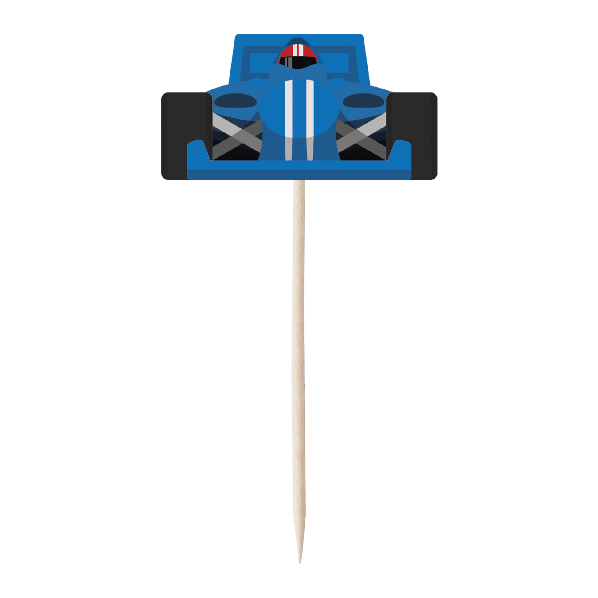 Perfect for cupcakes, these toppers can also be used on other party foods, such as sandwiches, puddings, desserts, cakes, and bakes. Ideal for birthdays or other racing car celebrations.
