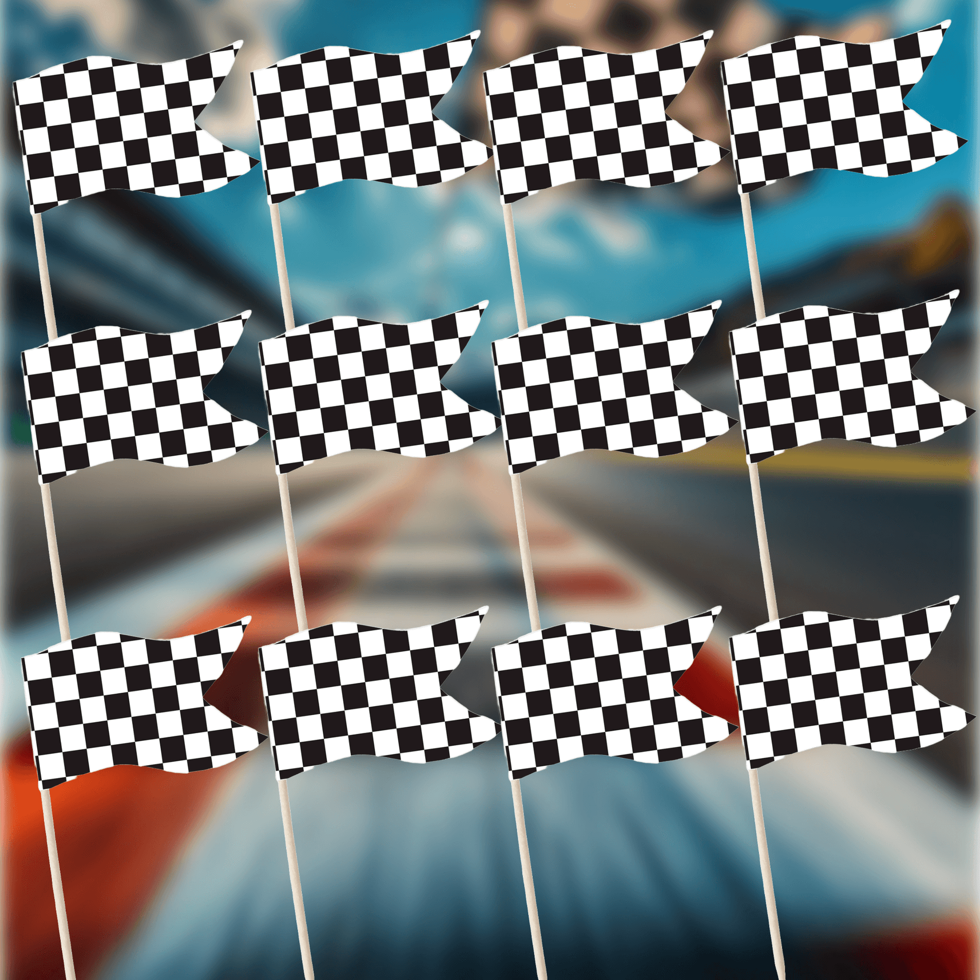 Racing Car & Chequered Flag Cupcake Toppers Set - 24pc