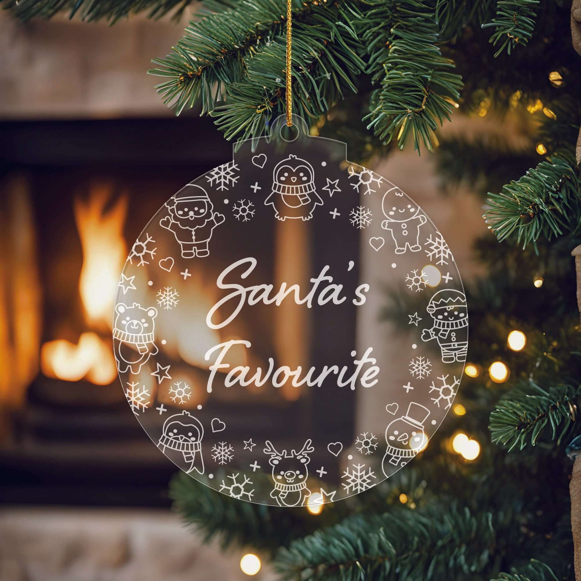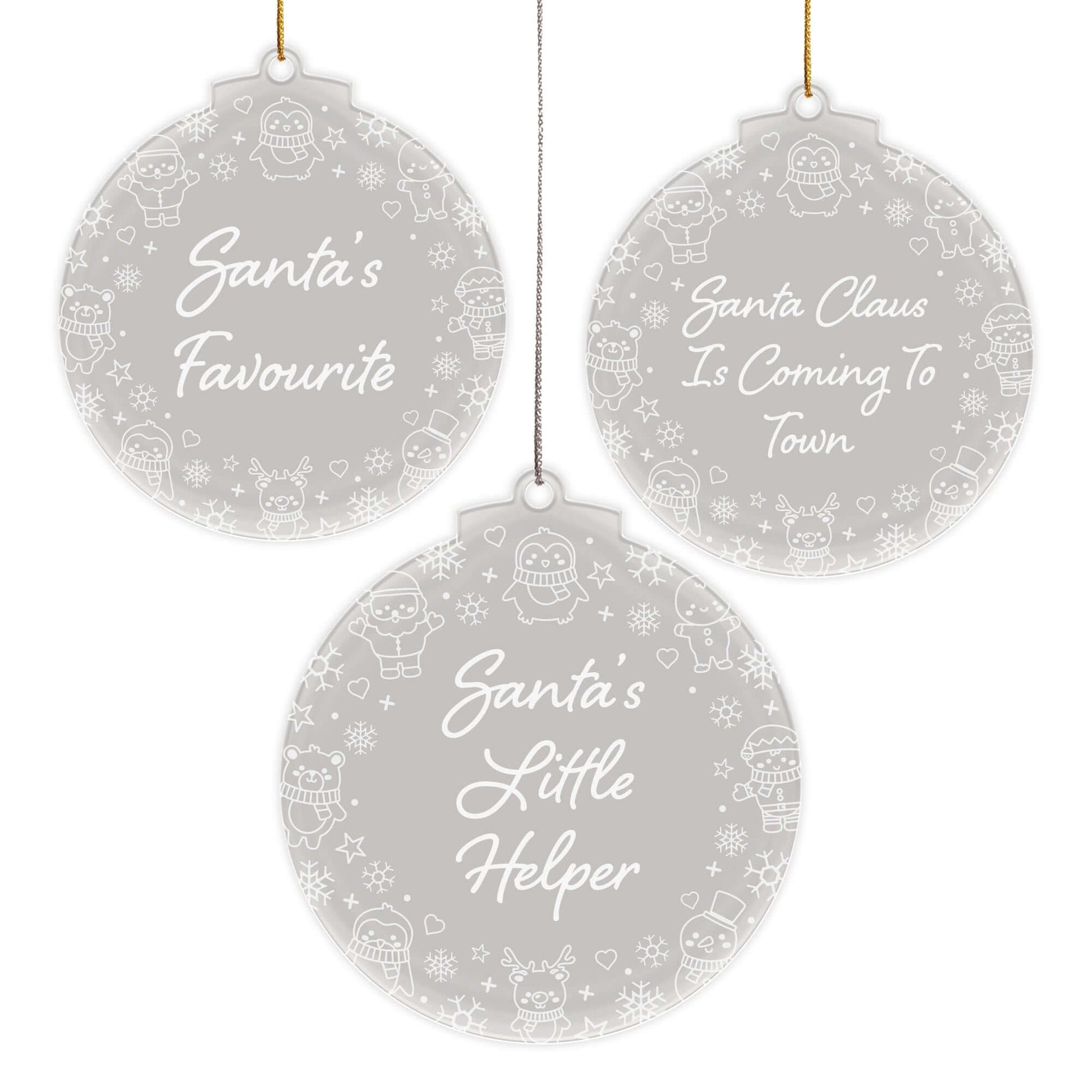 Santa's Favourite Christmas Cuties Tree Baubles - Set of 3 Engraved Clear Acrylic Festive Decorations - 8.8 cm