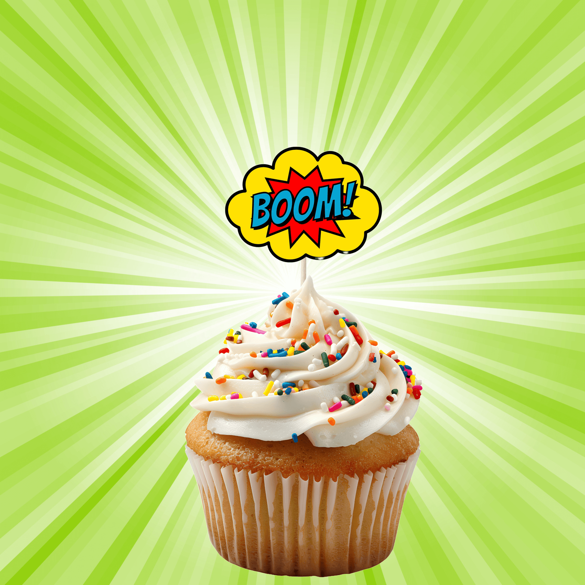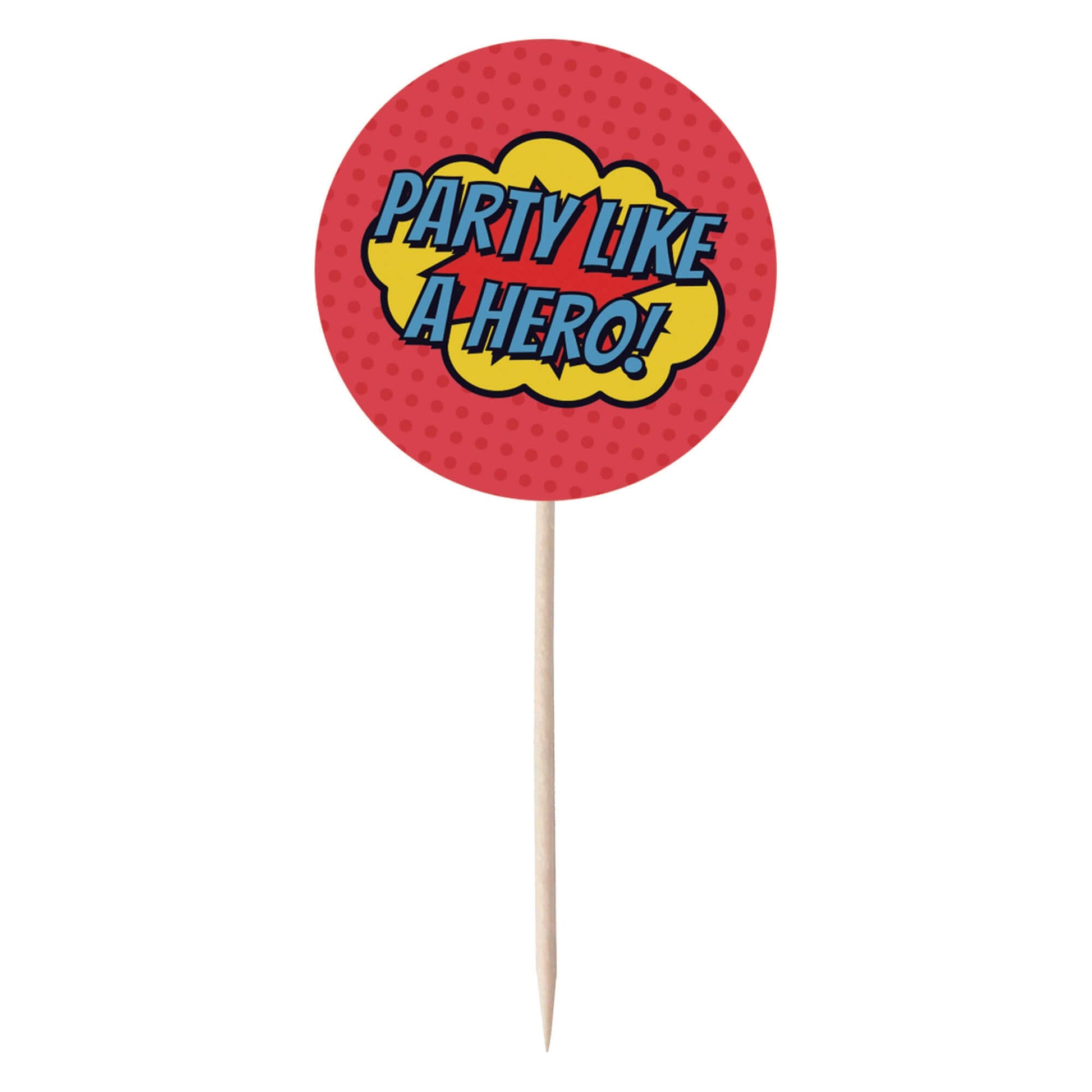 Perfect for cupcakes, but also awesome for sandwiches, desserts, or any party snacks, these toppers will make your table look like it jumped right out of a comic book. Whether it’s a birthday, a hero-themed party, or just a day that needs a little extra “WOW!”, these toppers will make every guest feel like a hero!