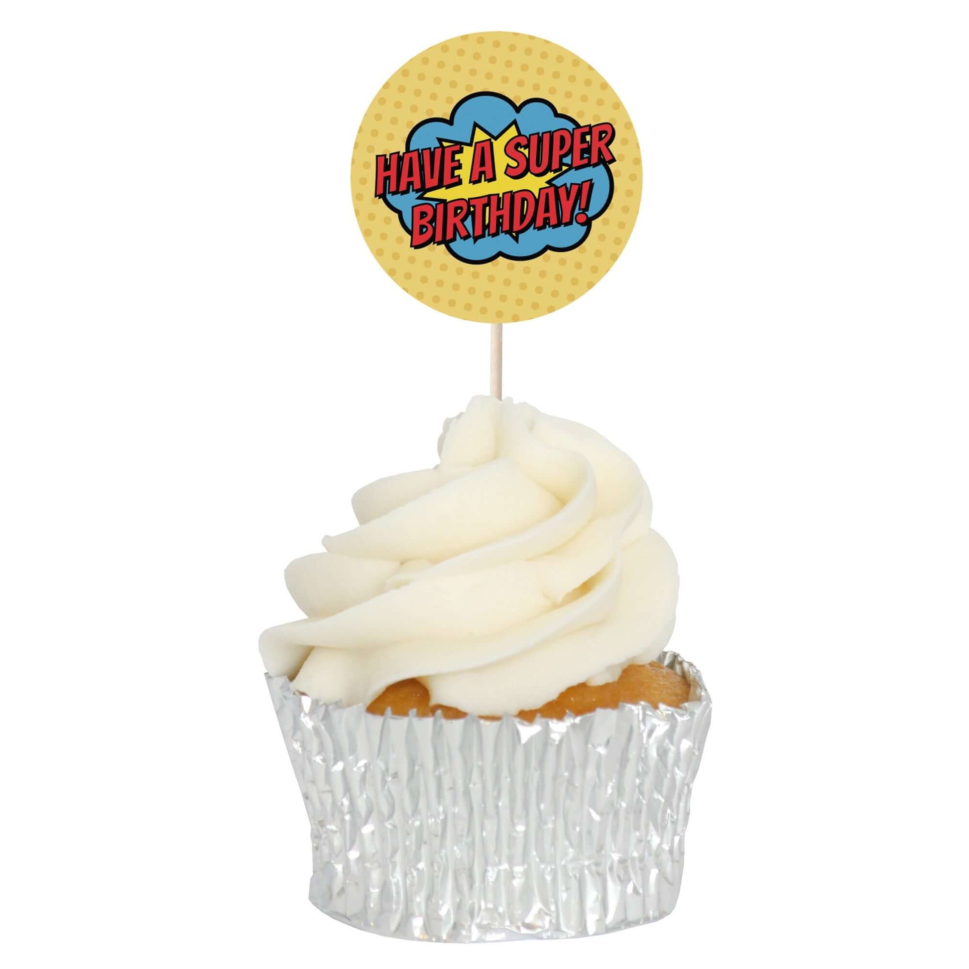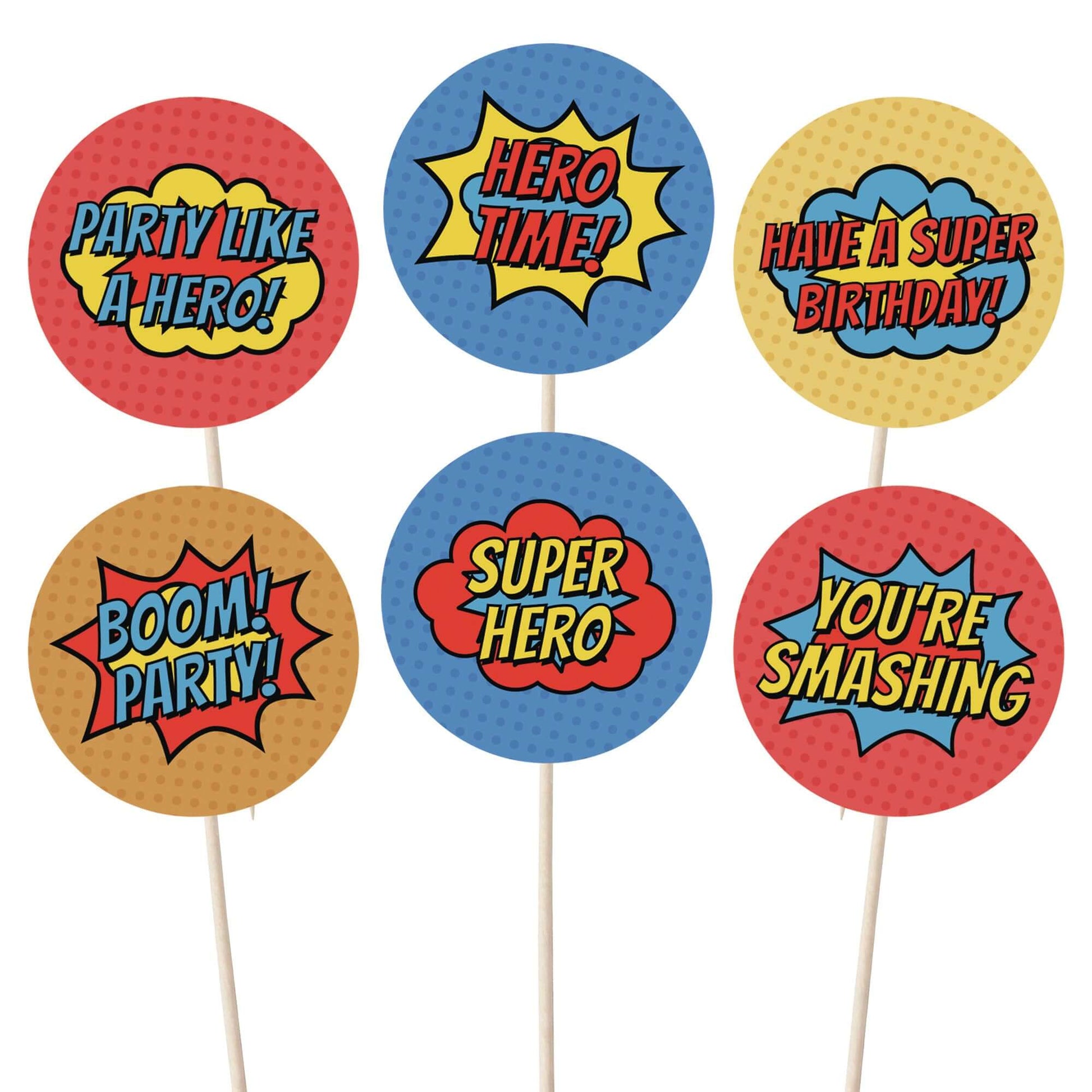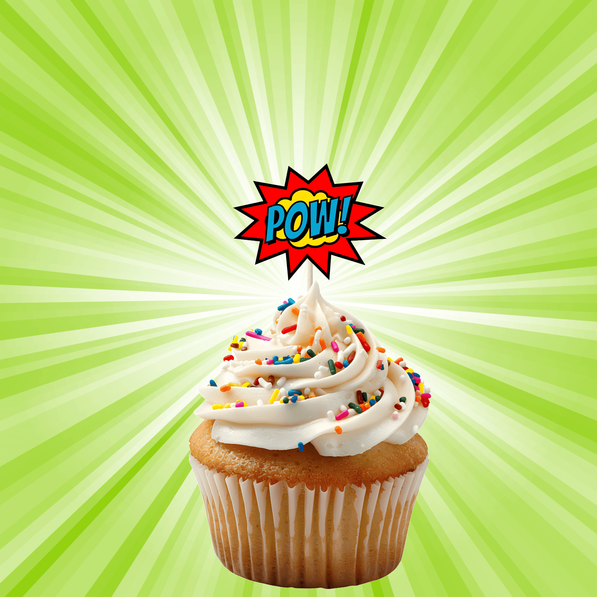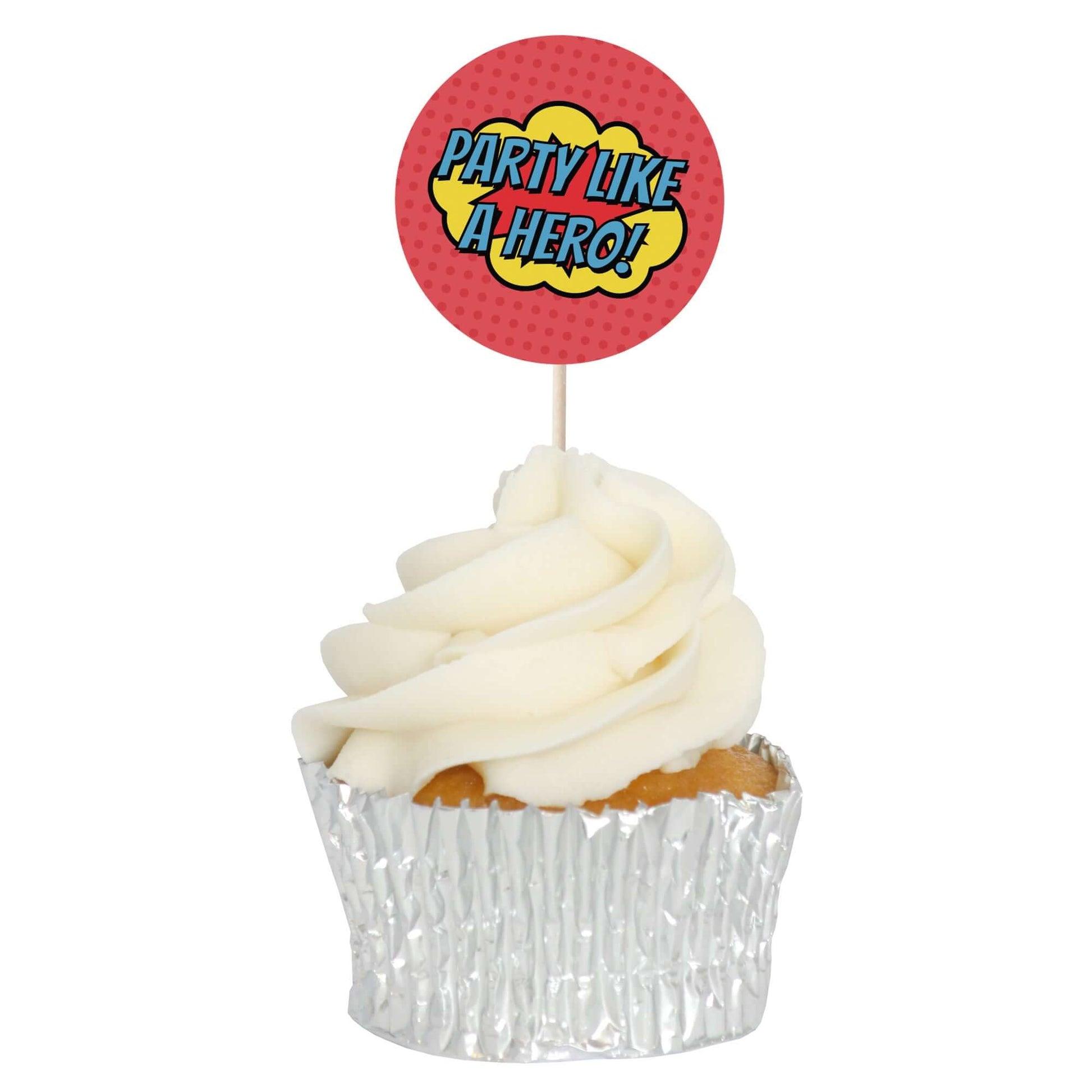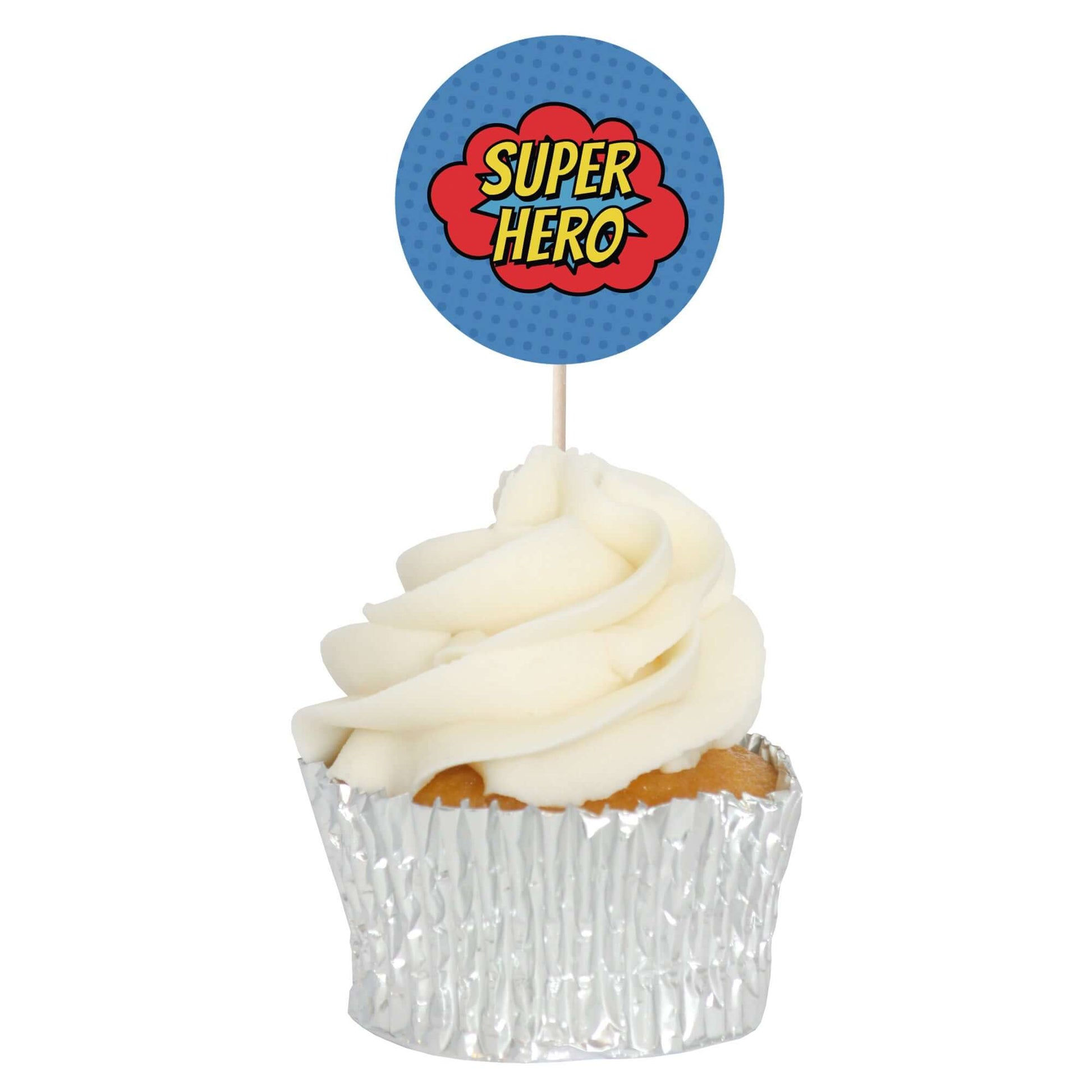 Perfect for cupcakes, these toppers can also be used on other party foods, such as sandwiches, puddings, desserts, cakes, and bakes. Ideal for birthdays or other Superhero celebrations.