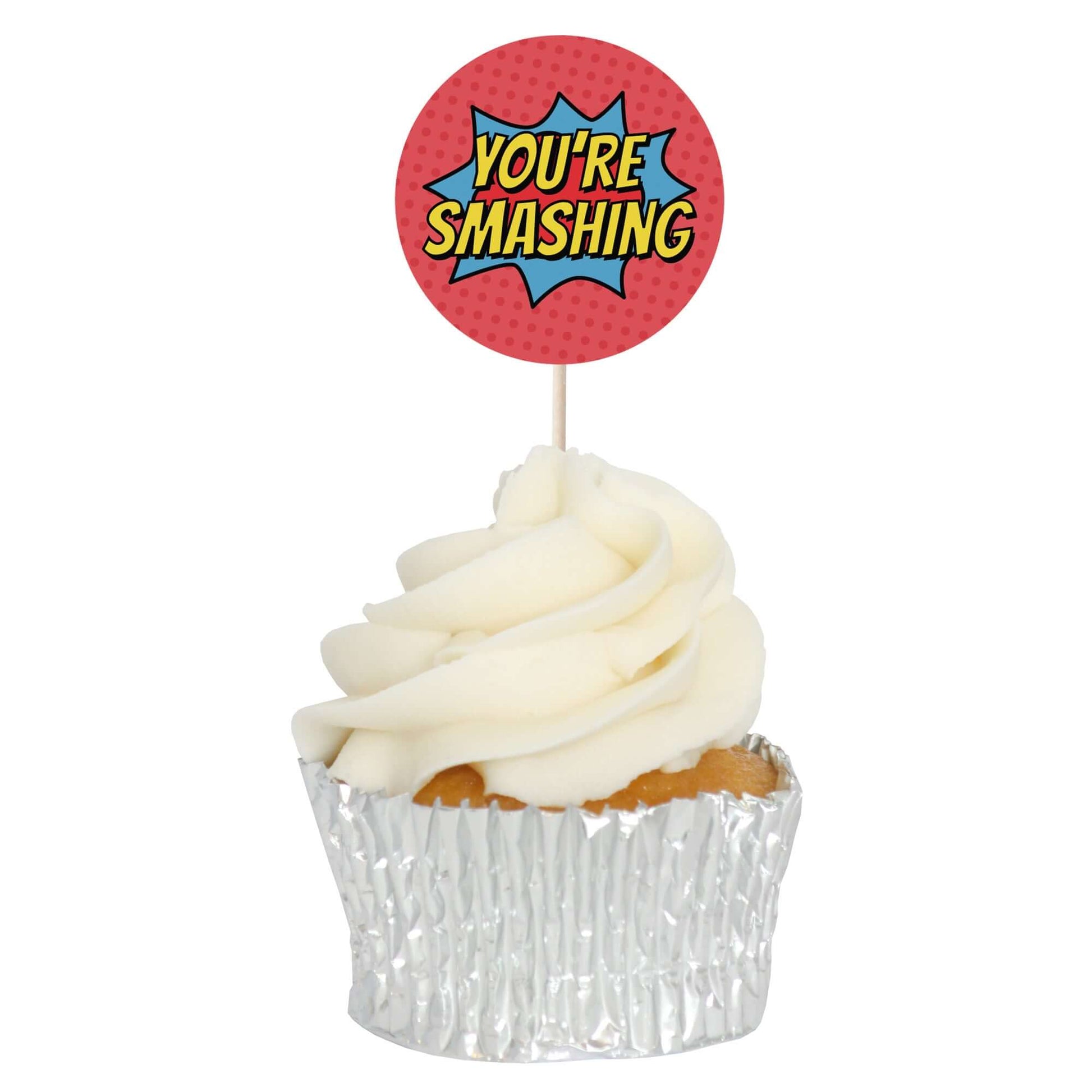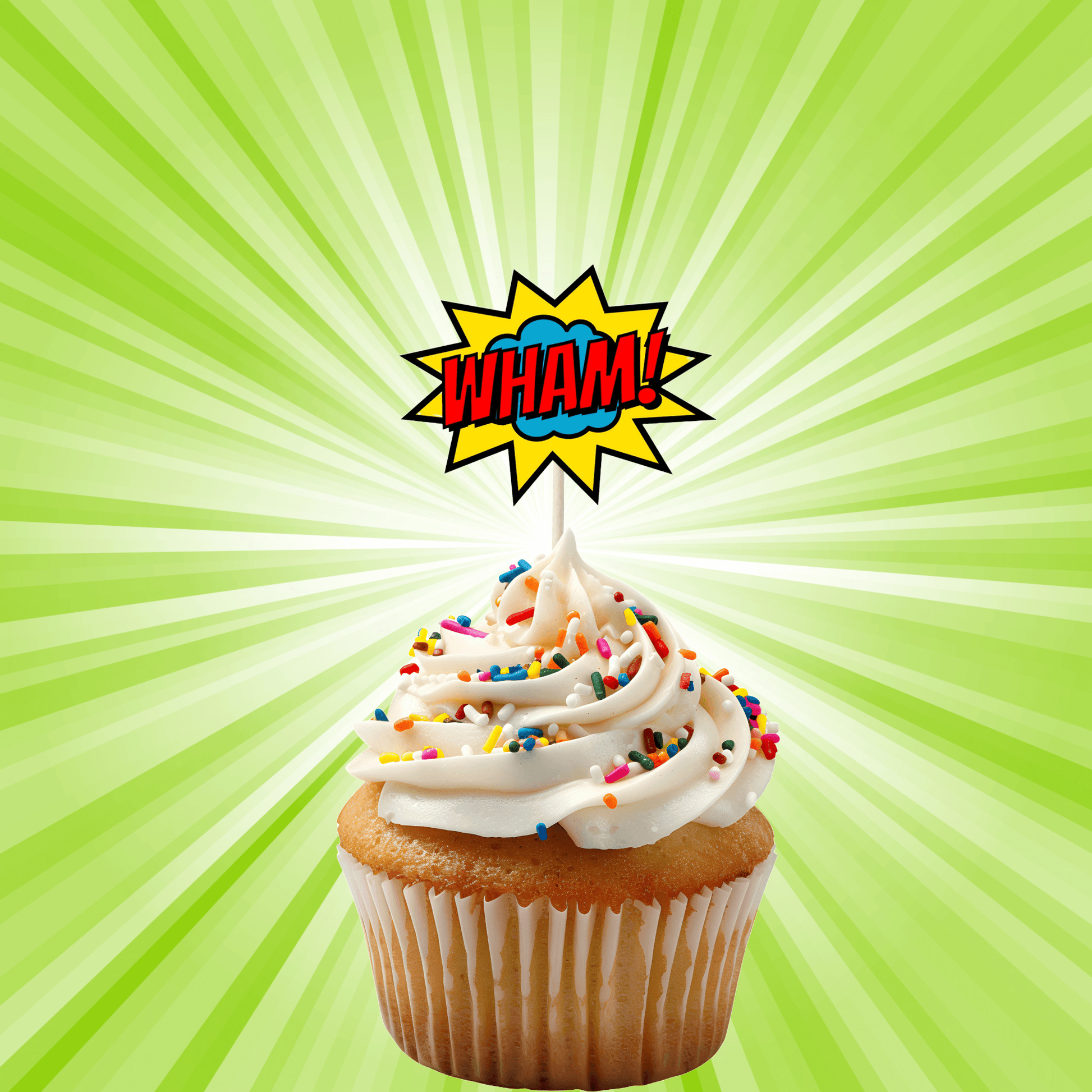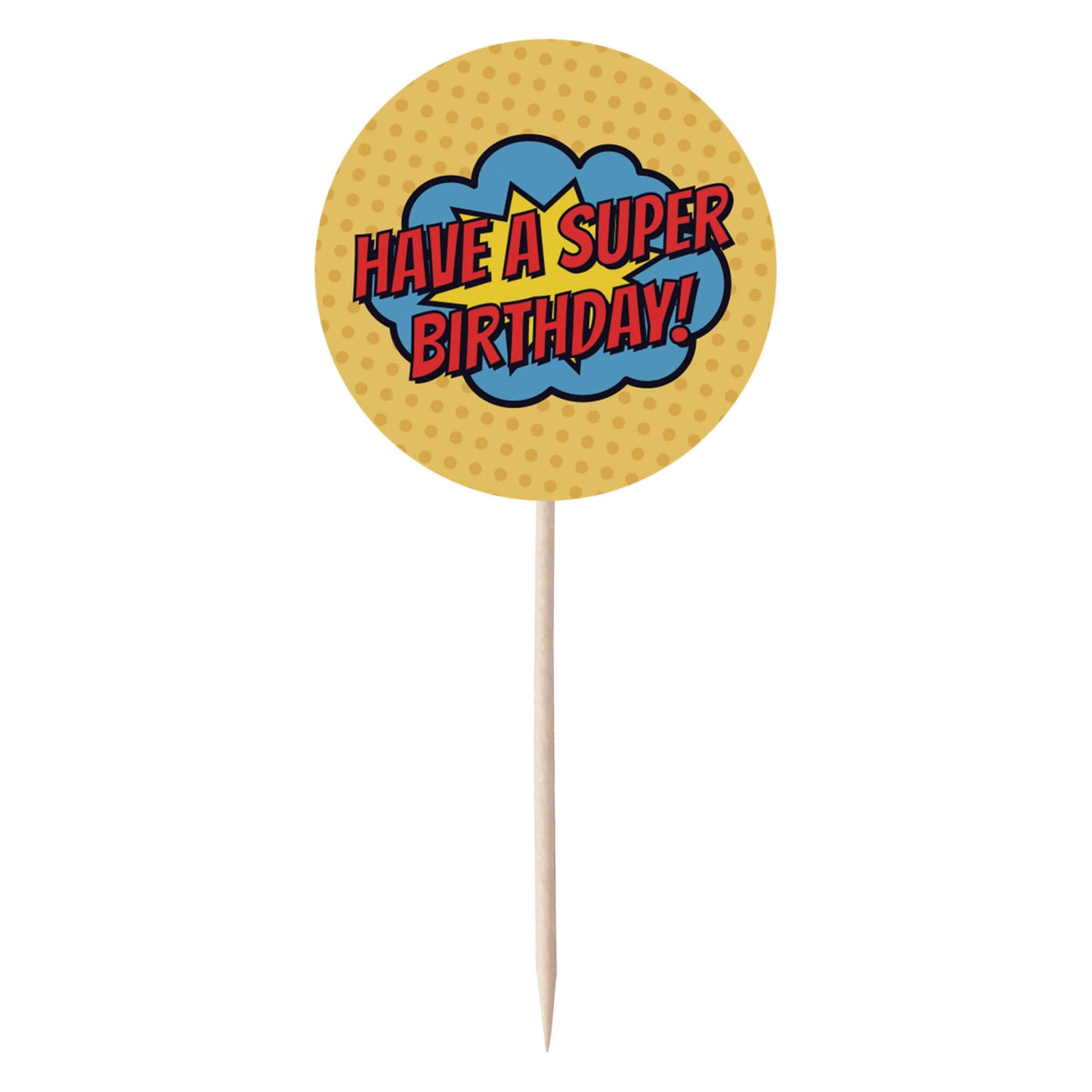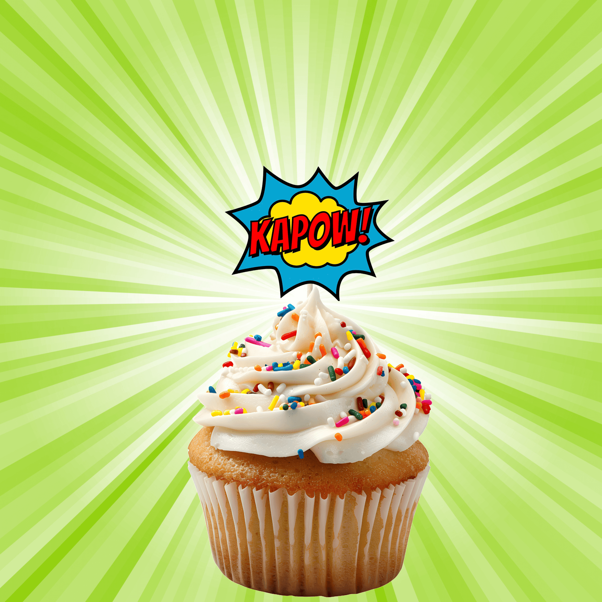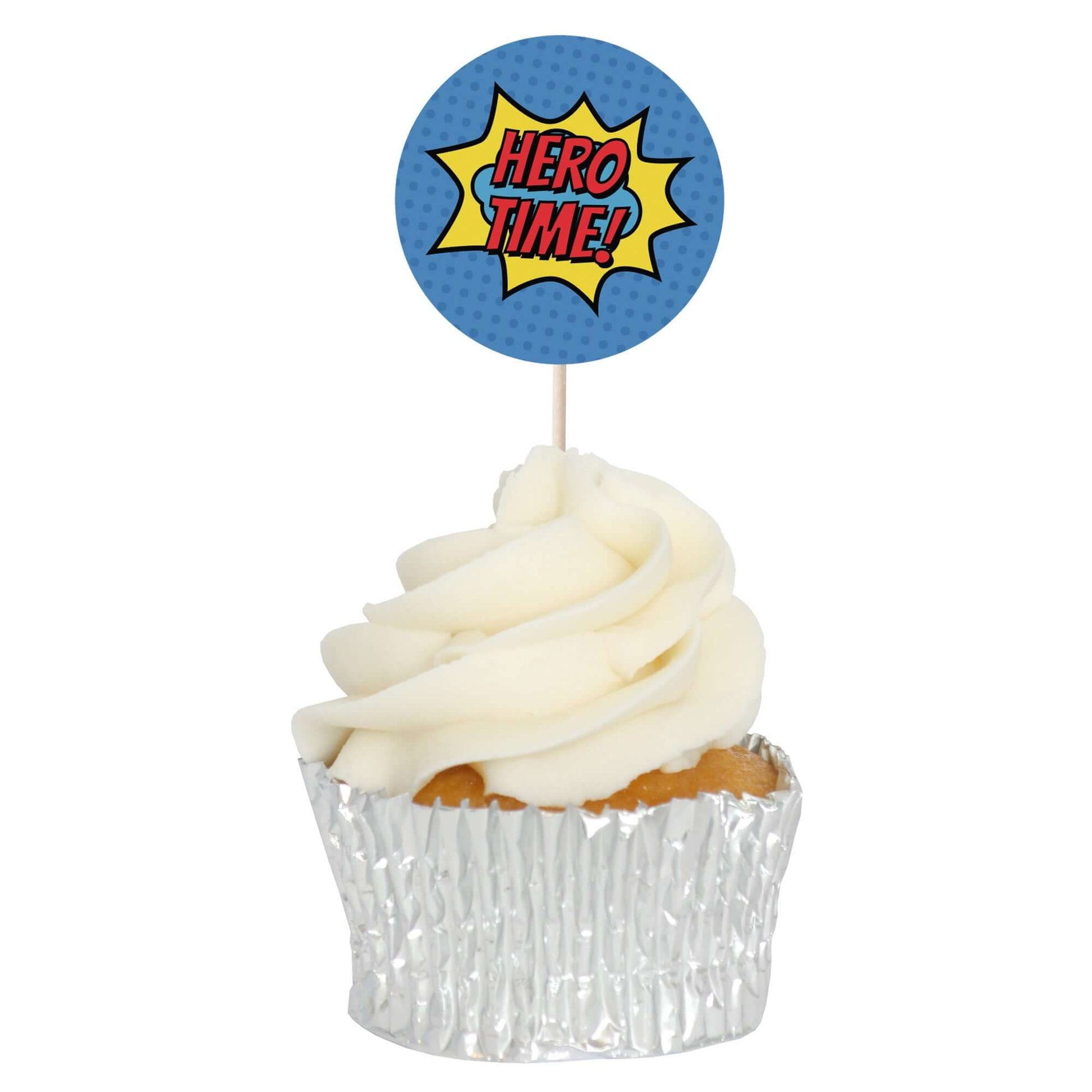 Perfect for cupcakes, these toppers can also be used on other party foods, such as sandwiches, puddings, desserts, cakes, and bakes. Ideal for birthdays or other Superhero celebrations.