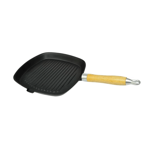 Grill Pan with Wooden Handle Cast Iron 20x20 cm